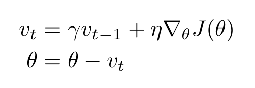 파란색 식을 정리하면 $\theta_2 = \theta_1 - v_2 = \theta_1 - \gamma v_1 - \eta \nabla_{\theta} J(\theta_1- \gamma v_1)$ 가 된다.