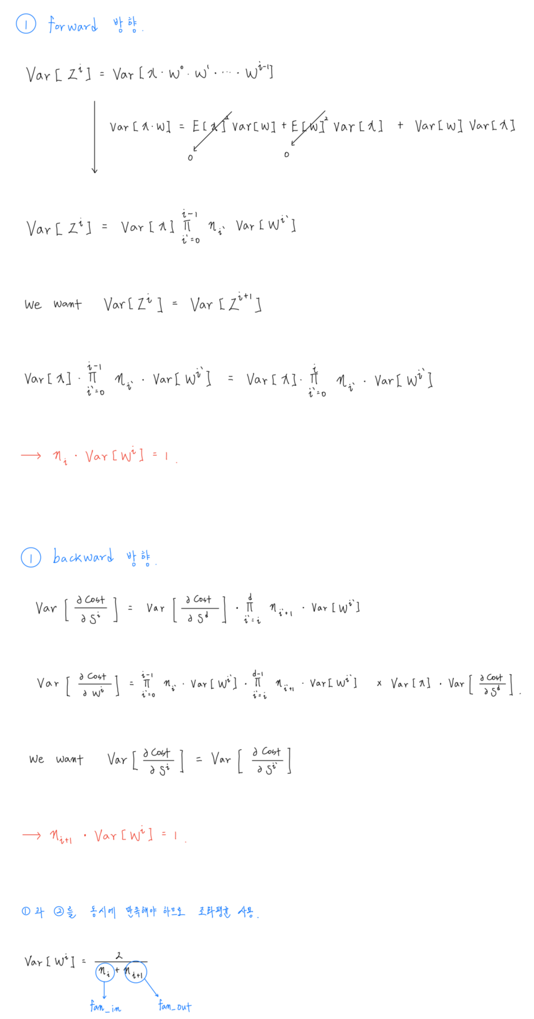 Xavier Initialization은 tanh를 activation function을 사용했을 때를 기준으로 제시된 논문이다. 그 근거로, 만약 sigmoid를 사용하면 $E[X] = E[Y] = 0$의 가정을 위배하기 때문에 이 Xavier Initialization이 성립하지 않는다.