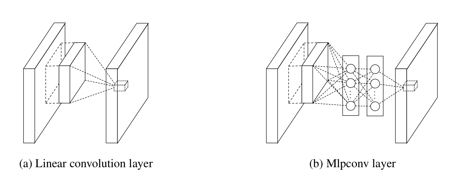 본 논문에서는 CNN 구조의 비선형성을 증가시키기 위해서 micro network 모듈을 사용하였다. 이 모듈이라는 개념은 이후에 Inception, ResNet에서 활용하게 된다.