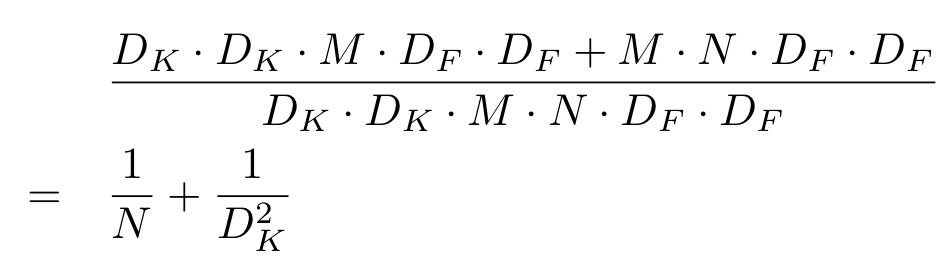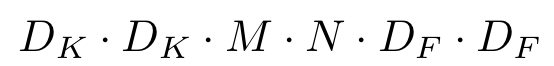 여기서 $D_k$는 커널의 크기이고, $N$은 출력 채널의 개수이며, $M$은 입력 채널의 개수, $D_F$는 feature map의 크기이다.